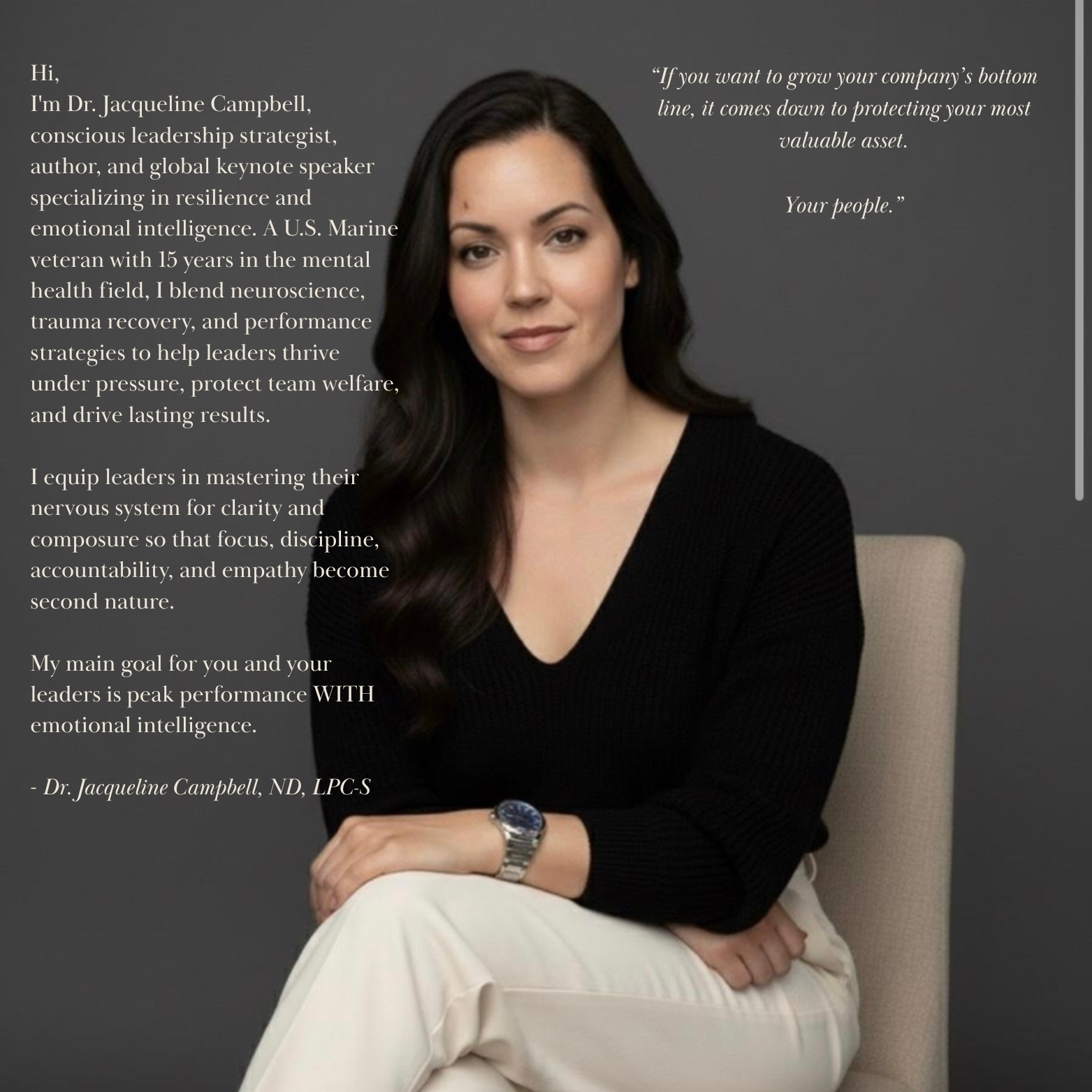 Losing top talent is costly and burnout drives your best people away. As an expert in balancing the human nervous system, I help leaders strengthen their mental resilience and emotional intelligence so they can lead effectively under stress. Through the Peak Performance Emotional Intelligence (PPEI) Workshop, leaders learn to protect their own well-being while fostering a culture where teams feel valued, supported, and empowered. The result? Leaders who perform at their peak, inspire loyalty, and create an environment where your top talent not only stays, but thrives.